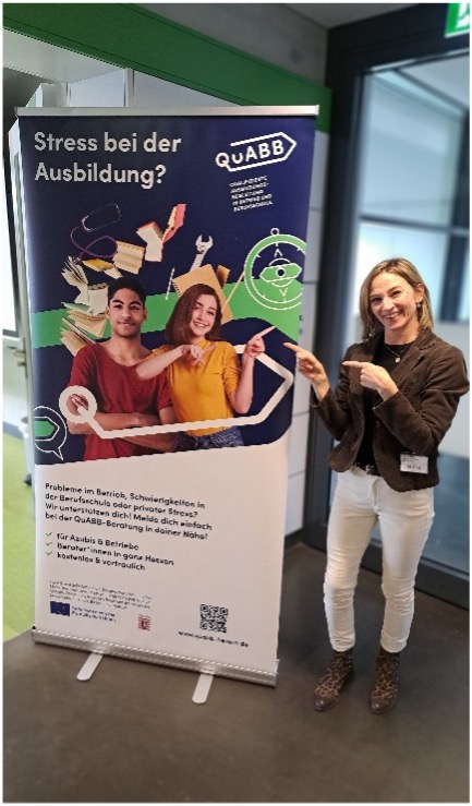 Im ersten OG präsentierten wir die Qualifizierte Ausbildungsbegleitung in Betrieb und Berufsschule – QuABB-ein Beratungs- und Unterstützungsangebot für Auszubildende, Betriebe und Berufsschulen, dass wir in Kooperation mit der WHS seit 2015 anbieten.