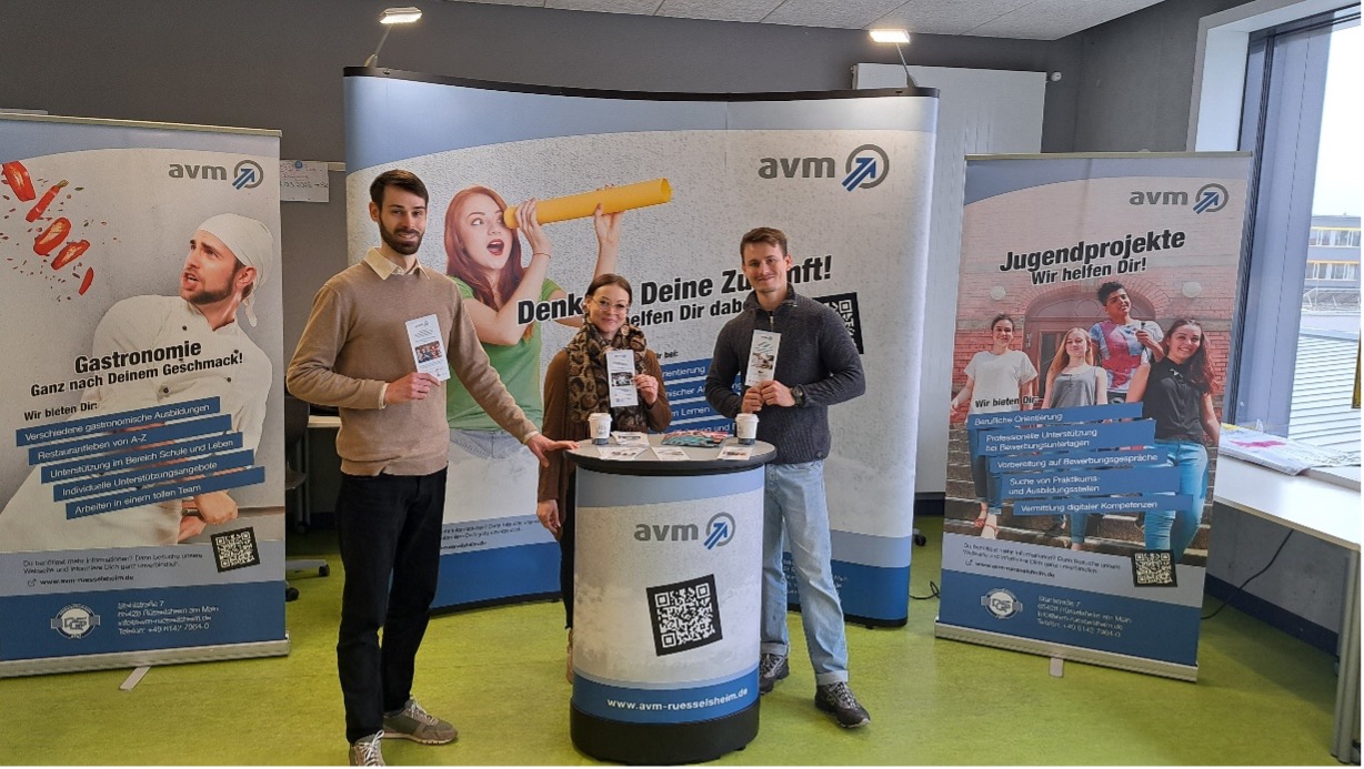 58 Betriebe und Institutionen präsentierten sich in diesem Jahr und die AVM gGmbH war in drei Geschossen mit drei Werbeständen und den jeweiligen Roll-Ups und Flyern vertreten: